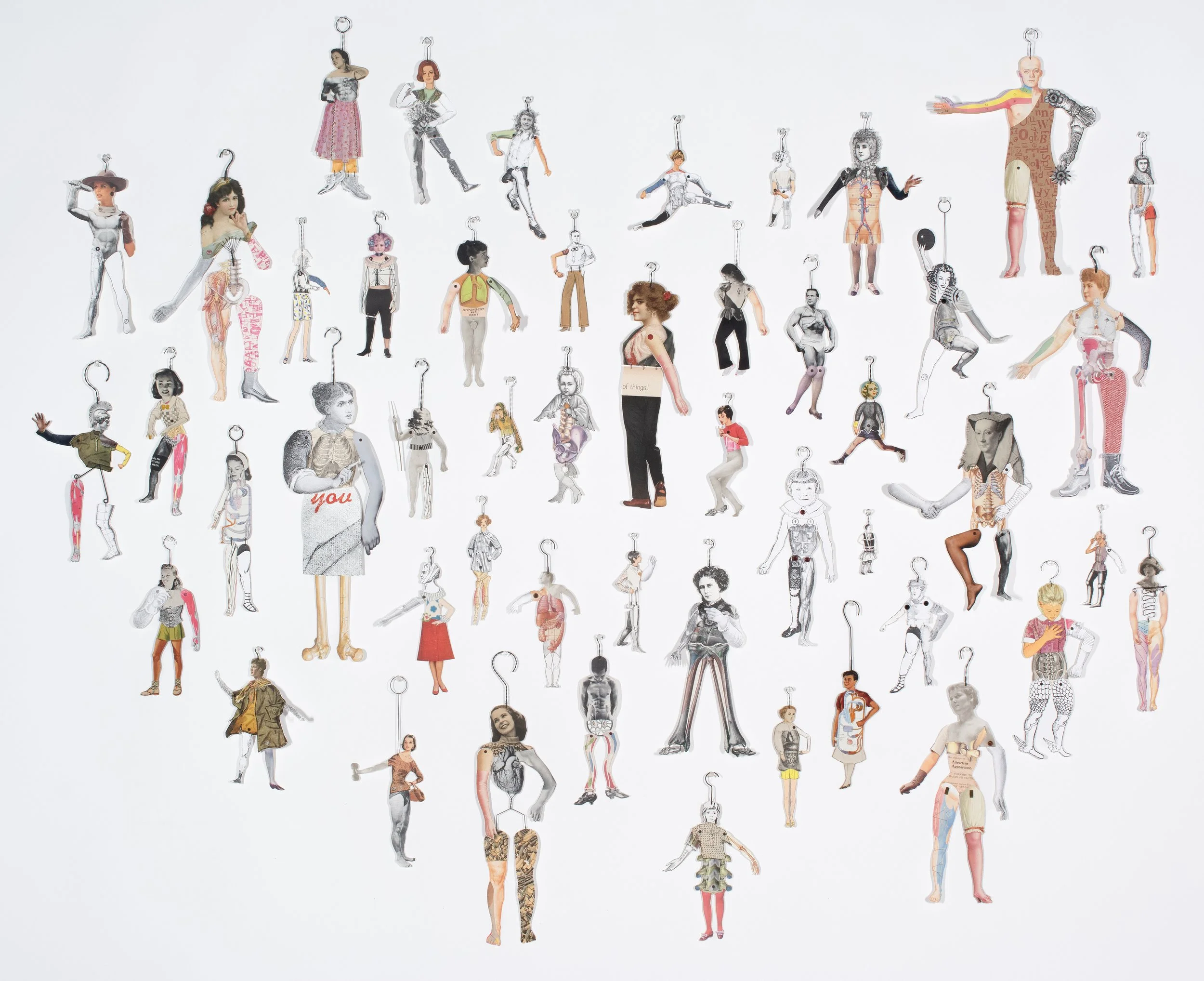 Old photographs, collected paper and book detritus, mica, brass, letterpress and copper label